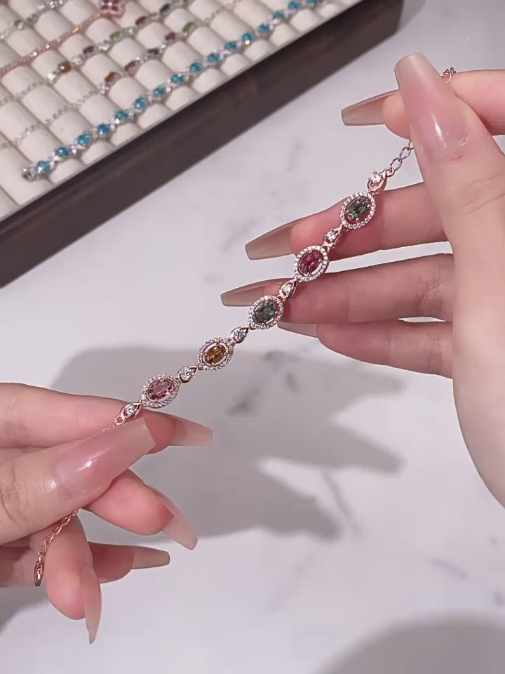 Elevate your wrist with the timeless elegance of our Natural Tourmaline Bracelet, a wearable masterpiece that marries artisanal craftsmanship with the raw beauty of nature. Each piece features hand-selected natural tourmaline gemstones in a spectrum of hues—soft pink, vivid green, warm yellow, and rich red—cut into elegant ovals that catch light with every movement, revealing the unique, iridescent luster only found in authentic tourmaline.